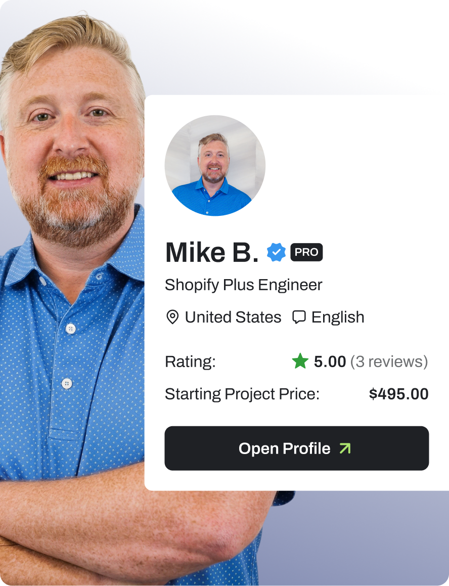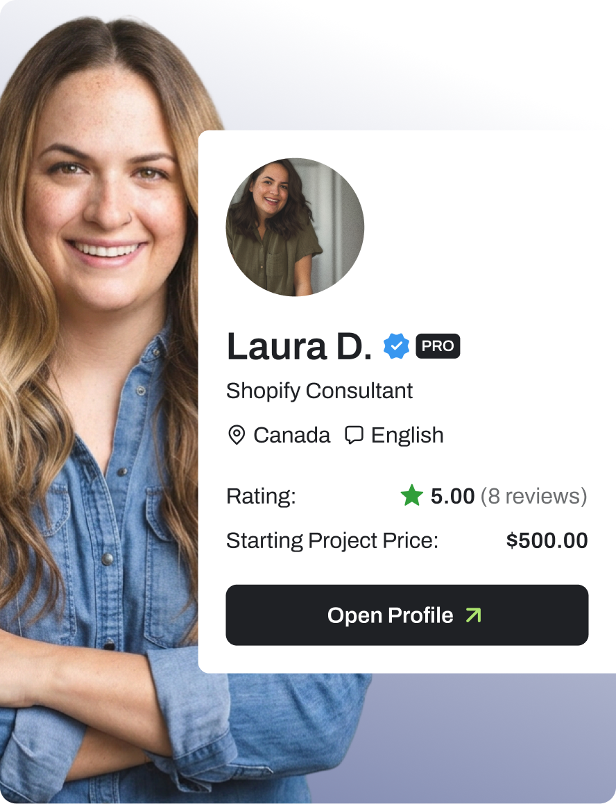 Every expert is carefully reviewed and approved, so you work only with proven Shopify professionals.