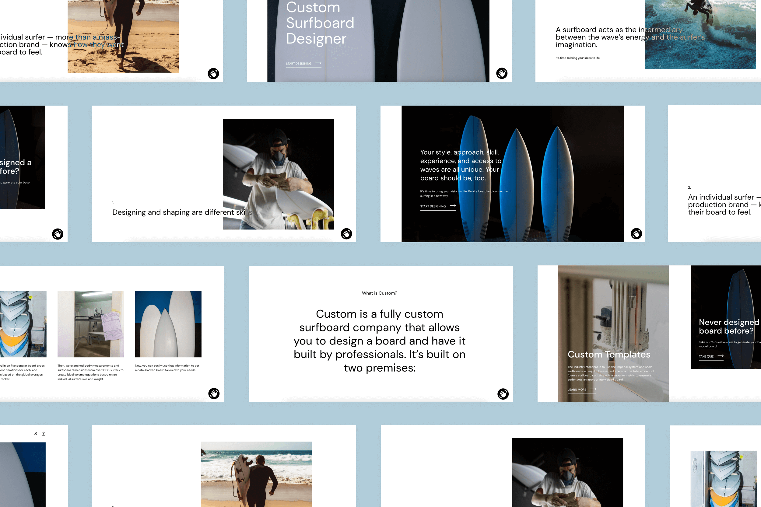 "I genuinely enjoyed working with HRVST and couldn’t be happier with the result. This was my first time turning a concept into a website and there were a lot of problems to work out during the development process. I feel like I benefited greatly from HRVST’s expertise, and really don’t think I would have gotten anything close to the same outcome if I chose a different agency. Couldn’t recommend them more!" – Brendan Buckley, Surf Custom