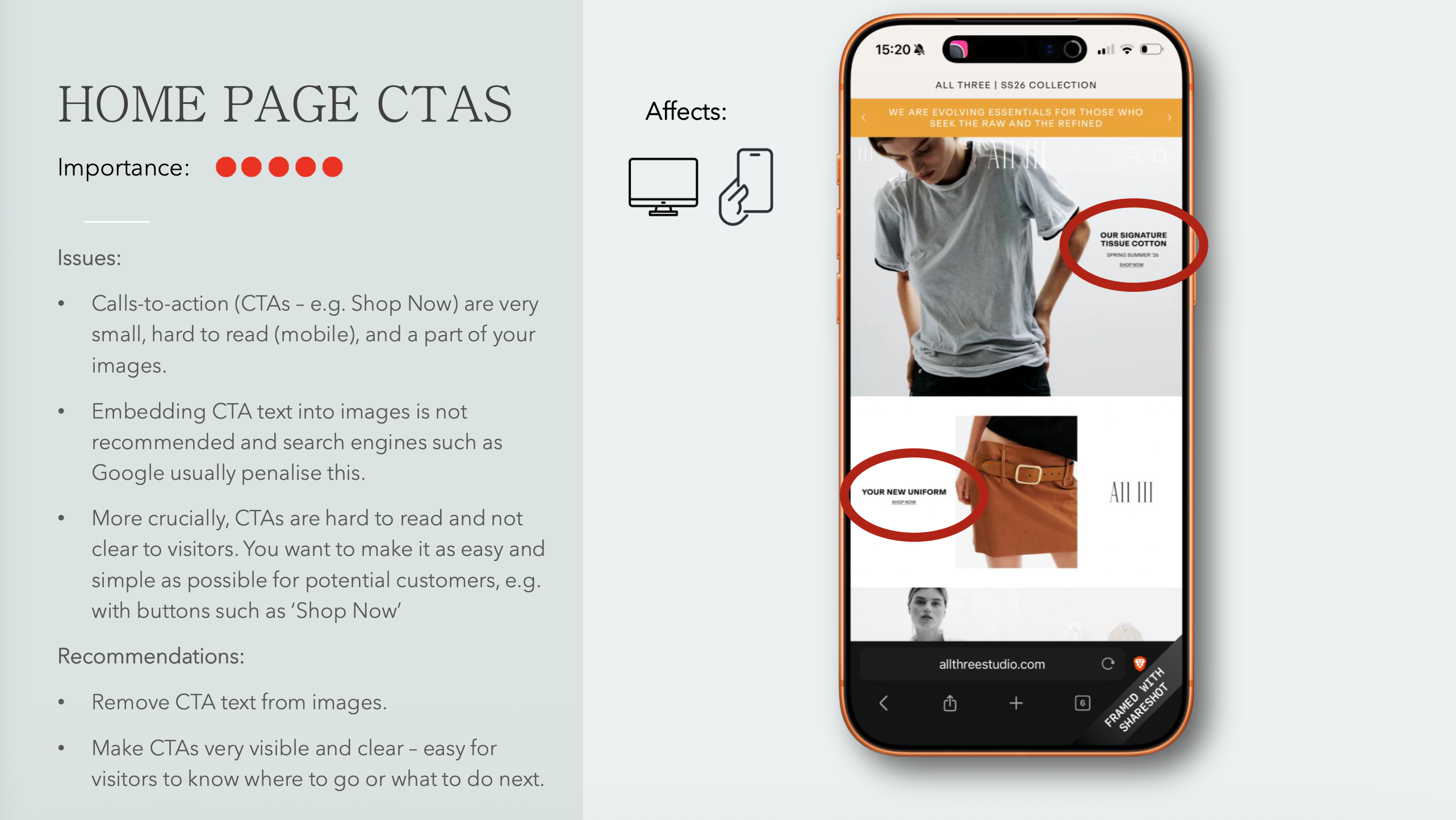 Mobile UX (layout, usability, speed-to-buy)