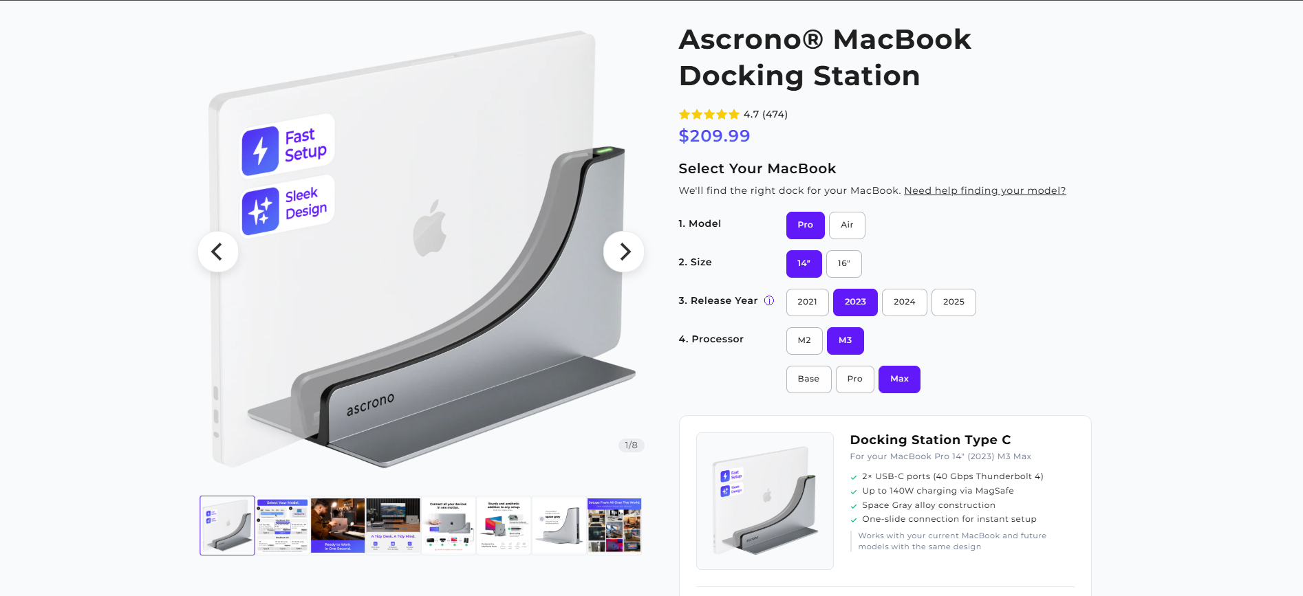 Instead of relying on Shopify’s default variant logic alone, the system intelligently connects each swatch selection to the exact docking station variant.